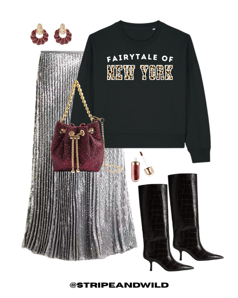 Here are the links to todays post: Sweatshirt STRIPEANDWILD: ADULTS Fairytale Of New York Christmas Jumper - BOXY FIT – stripe&wild Skirt HANDM: Sequined plissé skirt - Grey/Silver-coloured -...